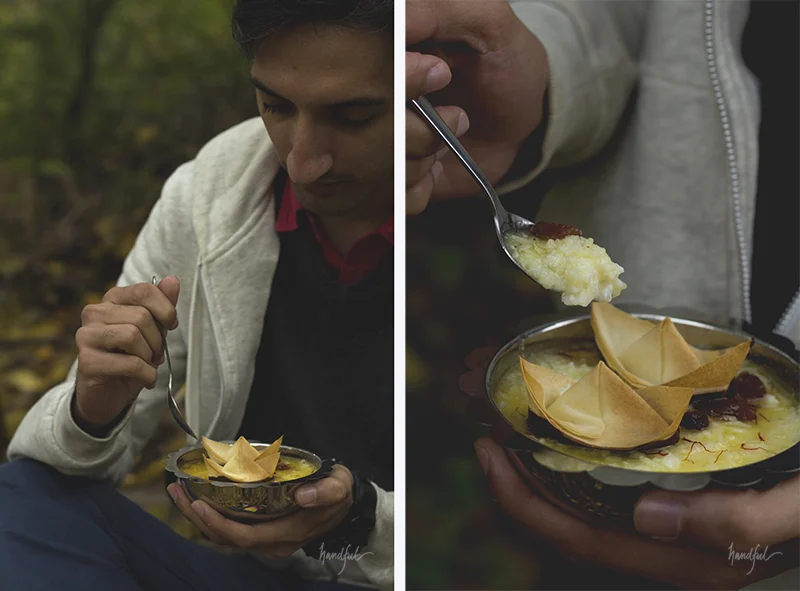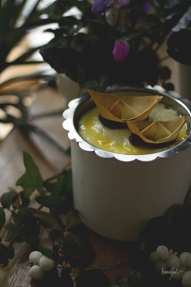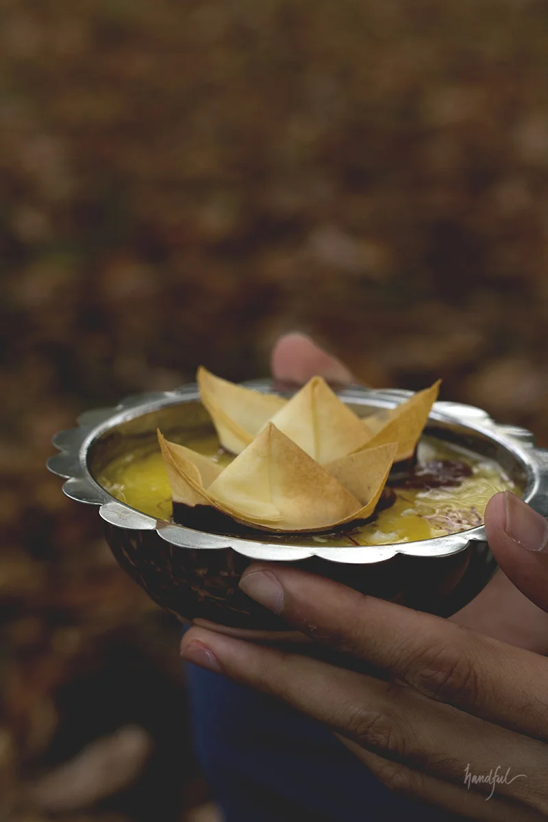 But those boats, I thought. The light-hearted fun, the candy colours and the humble form. I got to work with a bunch of pastry sheets, and you can see, had a bit too much fun and produced an entire battalion of little boats, dipped in my grown-up favourite, chocolate. I indulged this paramannam in another taste of home, saffron. Dipped in milk for the golden hue and blended with honey, instead of jaggery. And did I already mention what an unexpected and beautiful combination saffron and chocolate makes? So here it is, my humble offering to my parents, for which of course they will have to visit me in order to actually taste!