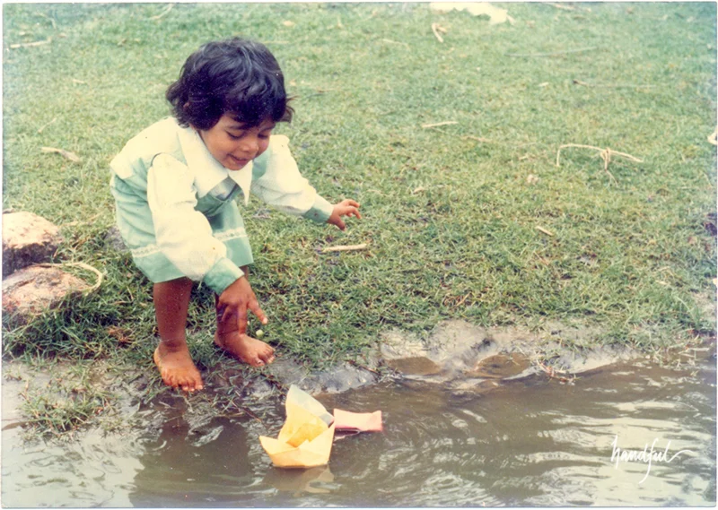 Funny thing is, the story behind these pictures had always been mystical to me- until this August, on my trip back to india. My father told me how he got down more than knee-deep in this little pond, waiting for the perfect moment to snap a few pictures of me setting sail little paper boats that he made especially for this. My beautiful mother is helping me out with the herding (and perhaps making sure I don’t fall in!) These photos are the embodiment of my parents, their love and the lengths they went to (and continue to), to give us these perfect little moments and memories.