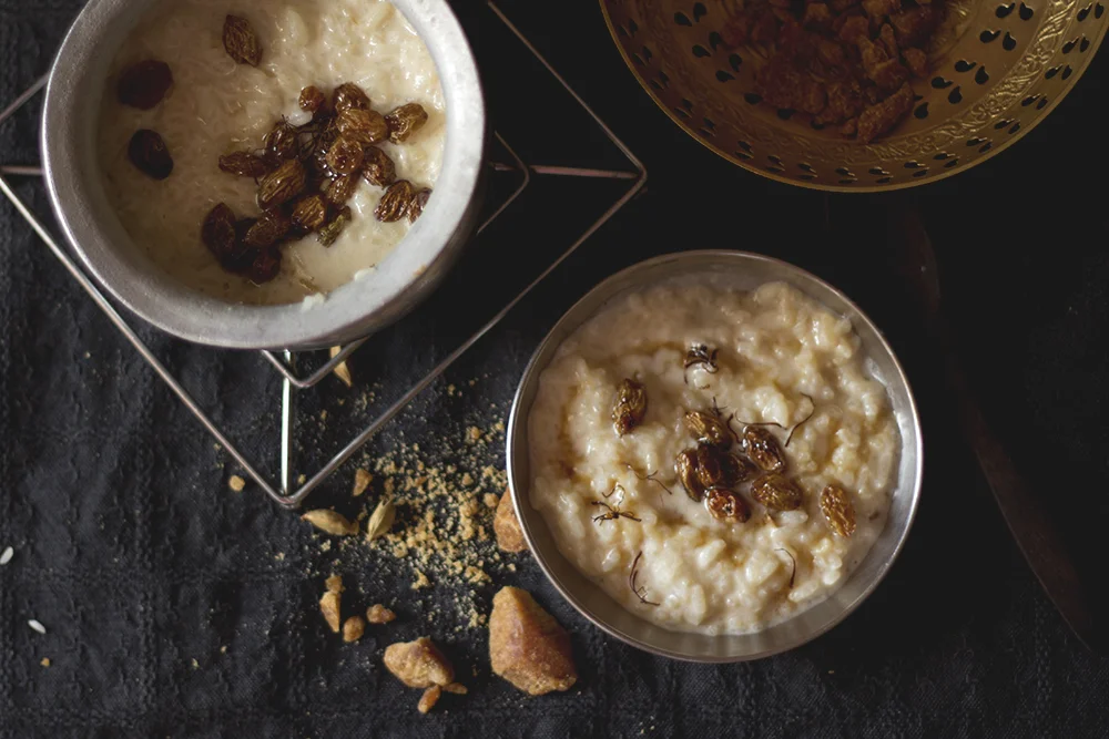 Where as a designer the comfort of nostalgia is often hard to evoke, food transcends all such limitations and the simplest things do so much to feel at home. Paramannam is one such thing. It’s the Telugu version of one of the most universal and comforting dishes in the world: the rice pudding. It was one of the most common desserts I ate growing up, for festivals, for guests or just for fun. Rice slow-cooked in milk, laced with powdered cardamom and to finish, a golden streak of melted jaggery that gives it its caramely hue.