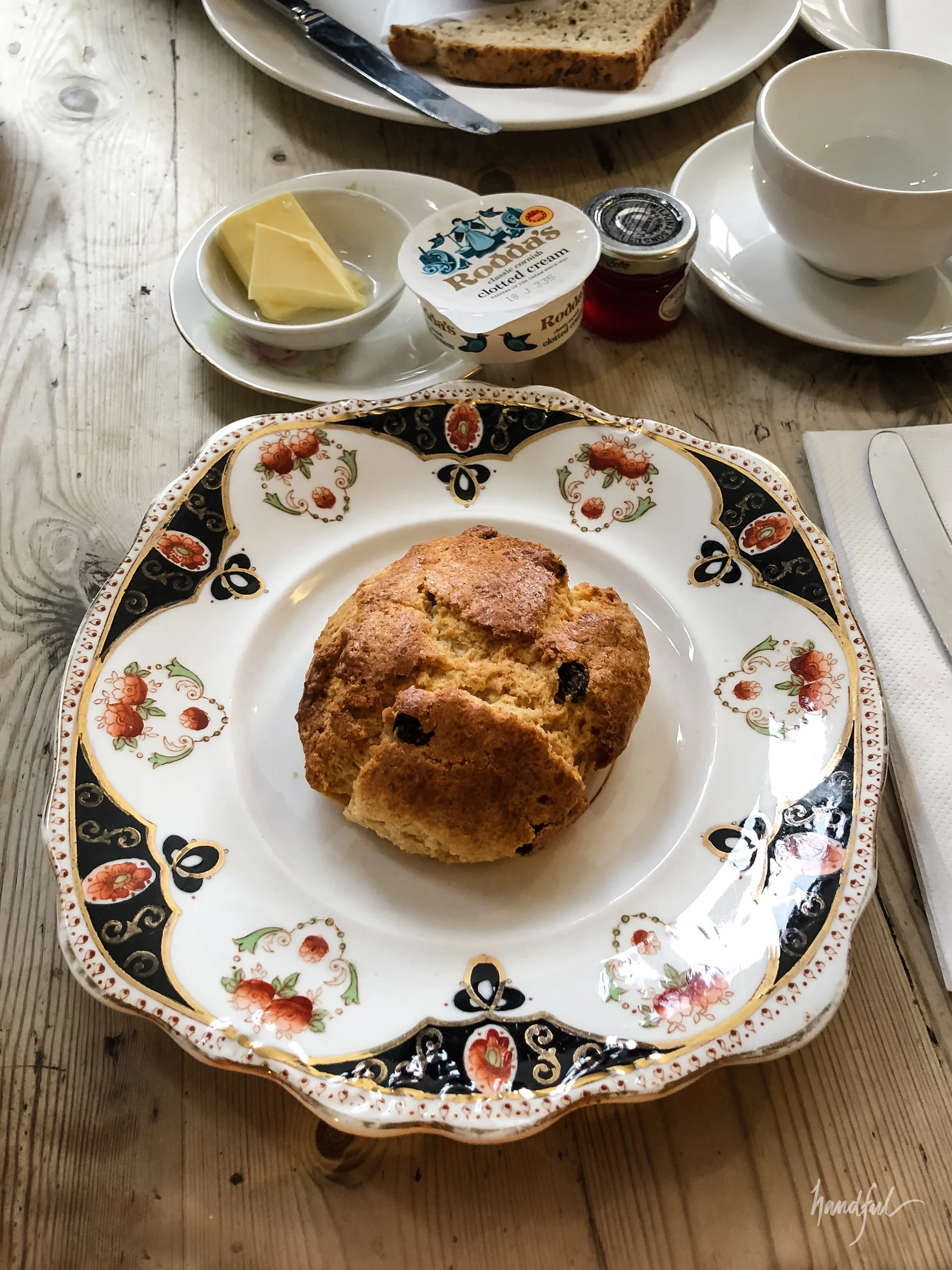 After a great start to the day exploring the Slaughters and then Bourton-on-the-Water in the Cotswolds area, we set about on our notoriously last-minute exercise of finding a decent lunch spot in the middle of nowhere. Despite my otherwise good sense of a proper lunch (read: warm and savory) after a morning of coffee and sweet pastries, I was willing to forego the criteria this time to get myself a proper countryside cream tea experience I’d read so much about. Contrary to what it might sound like, I am actually not a tea person– even being from India, I will always, always, pick filter coffee over chai, much less classic black tea. But, as every human is entitled to some amount of FOMO, here I was, interested in my last cup of tea on our final UK trip for a while, given the impending expiry of our visitor’s visa.
